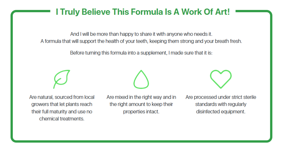 So, what I did was to perfect an easy, yet powerful formula, which consists of amazing vitamins and plants, such as Vitamins A, C, D3 & K2, phosphorous, potassium, zinc, micro-encapsulated calcium (MEC), xylitol, collagen, MSM and spearmint/peppermint.
